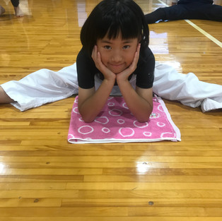 最後はみんなで開脚ポーズ!みんな肘まで付けるようになりました。